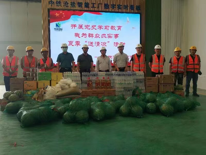 公司黨支部書記、總經(jīng)理王志巖,行政副總經(jīng)理王新全、總會計(jì)師李紅標(biāo)、生產(chǎn)副總經(jīng)理凌磊參加本次活動,王志巖代表公司領(lǐng)導(dǎo)班子向奮戰(zhàn)在高溫一線的干部職工送上公司的親切問候,感謝他們?yōu)橹需F滄鹽發(fā)展所作出的貢獻(xiàn),并要求廣大黨員干部職工要時刻把安全生產(chǎn)意識放在心中,牢記高溫季節(jié)施工安全注意事項(xiàng),嚴(yán)格落實(shí)安全生產(chǎn)的主體責(zé)任,確保各項(xiàng)防暑降溫措施都做到位,科學(xué)安排工作時間,切實(shí)保障生產(chǎn)人員的安全健康。同時為生產(chǎn)一線的職工們送上了綠豆、白糖、飲料、解暑藥等清涼物資及豬肉、食用油等生活物資的同時公司還為廠房加裝了電風(fēng)扇改善生產(chǎn)工作環(huán)境,通過此次“送清涼”活動,讓廣大職工感受到了“家”的溫暖,也是開展黨史學(xué)習(xí)教育活動中“我為群眾辦實(shí)事”的充分體現(xiàn),切實(shí)把黨的貼心關(guān)懷送到奮戰(zhàn)在一線的工作人員手中、送到職工群眾的心坎上,讓職工感受到黨的溫暖,感黨恩,跟黨走。