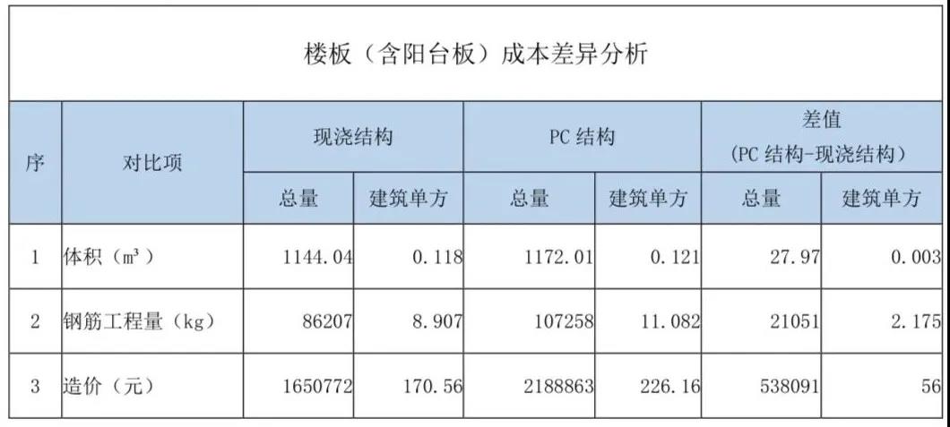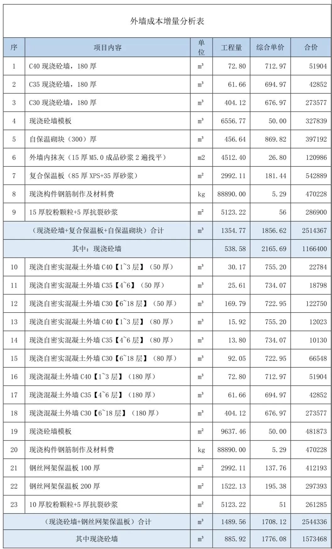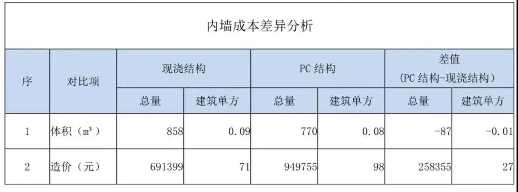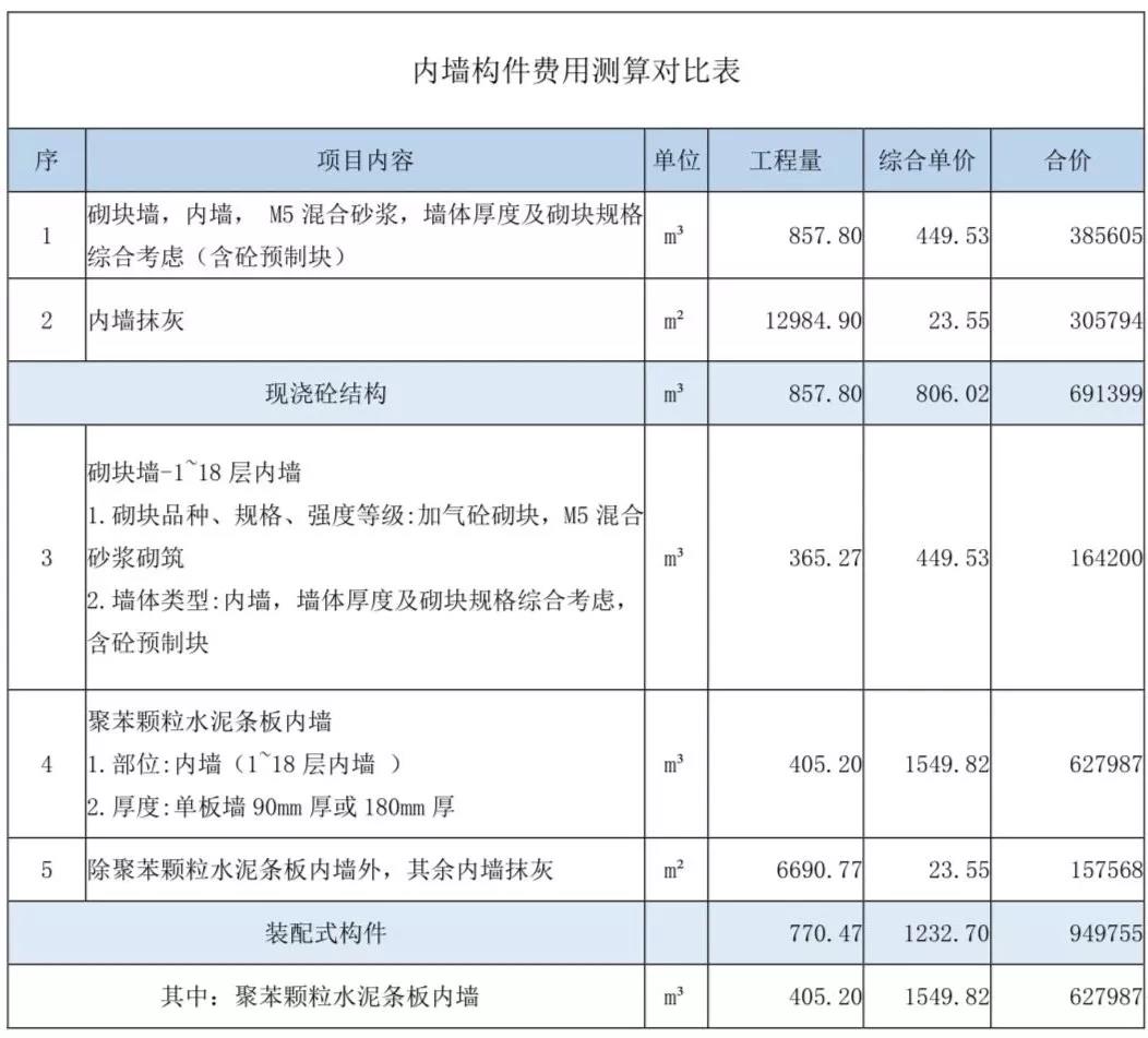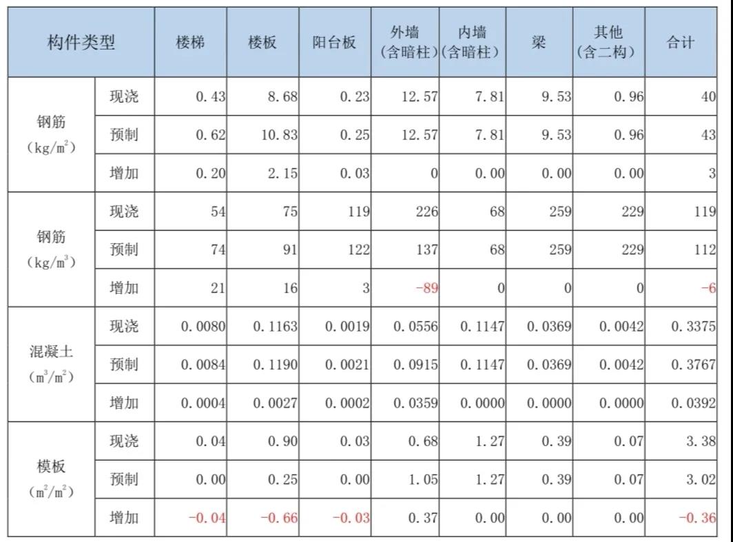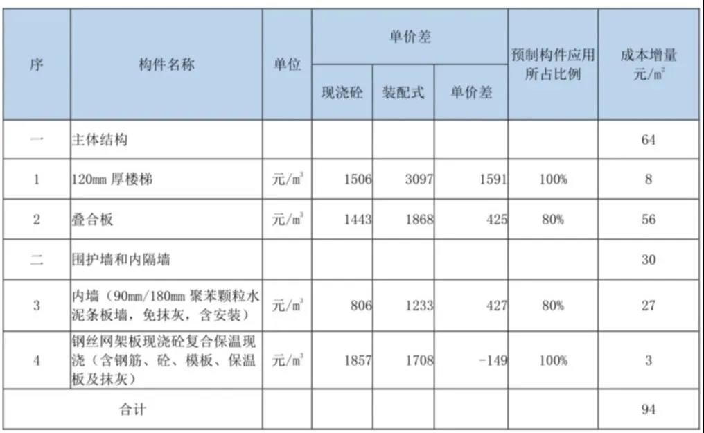 剪力墻結構體系(單體裝配率51%)其中兩項成本增量匯總表,如下表: