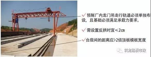 5) 反拱度設(shè)置和分配應(yīng)滿足設(shè)計(jì)和線形要求,臺(tái)座的側(cè)邊應(yīng)順直,要有防止漏漿的有效措施。