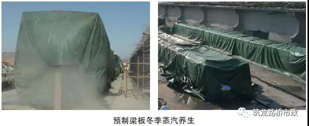 2) 預(yù)制梁(板)冬季養(yǎng)生。在拆完模后立即覆蓋阻燃篷布并采用鍋爐蒸汽進(jìn)行養(yǎng)生。